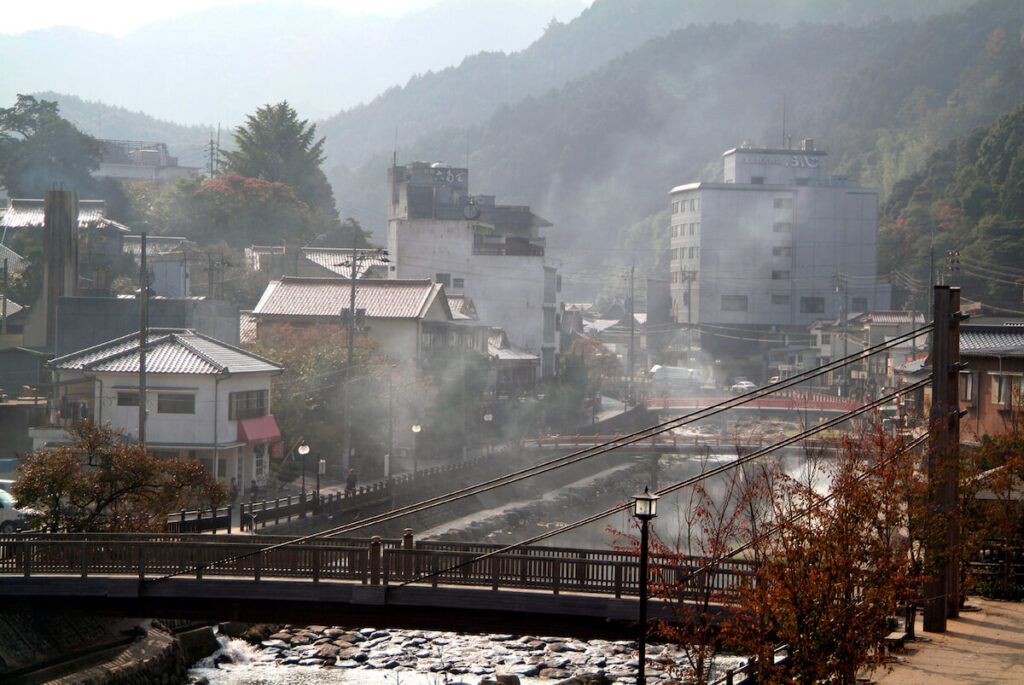 長門湯本温泉は、 音信川が温泉街を流れる、風情ある温泉地です。川沿いの散策や、川床テラスで一息つくのも魅力です。