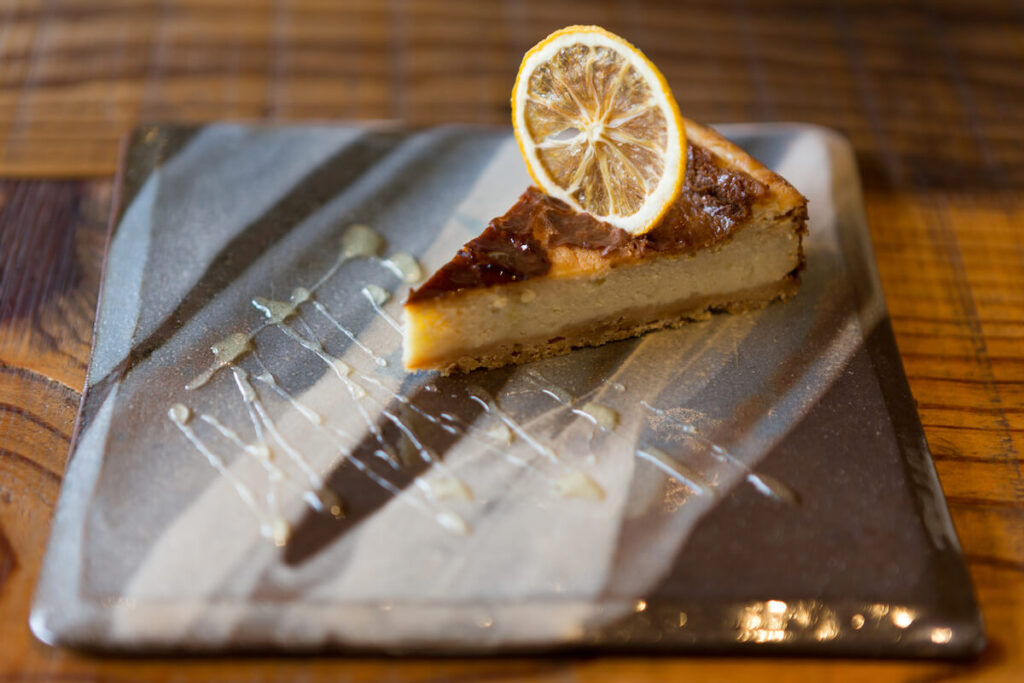 古い家屋を改修した「cafe&pottery音」は、萩焼のギャラリーを併設したお洒落なカフェです。窓の外を流れる川を眺めながら、丁寧に淹れられたコーヒーやチーズケーキを味わえます。