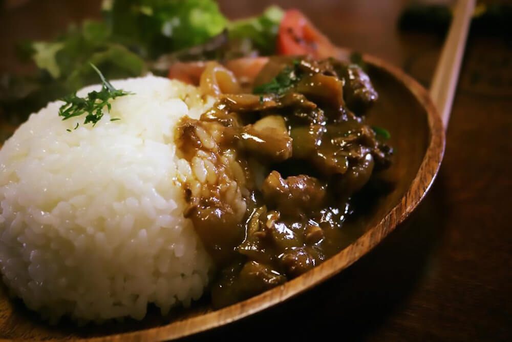 立石観音の近くにある「海のそばのカフェ blisspoint」では、地元のお米を使ったチキンカレーやスイーツなどを楽しめます。